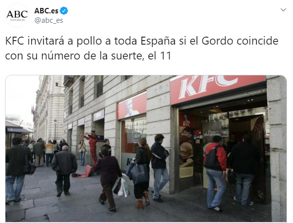 Los de KFC dicen que si toca el 00011 en la lotería Nacional nos regalan pollo frito a todos. Los Juglares harán cantares sobre ese día...