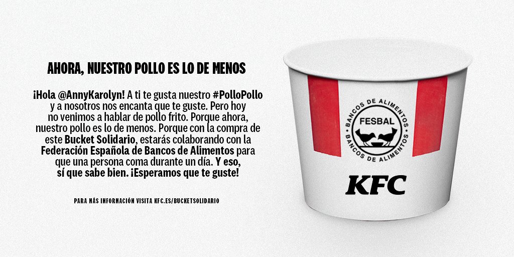 ¡Así nos gusta! Seguro que también tienes f**** ganas de ayudarnos con esto, @AnnyKarolyn #BucketSolidarioKFCpic.twitter.com/WIBZJvS8Va