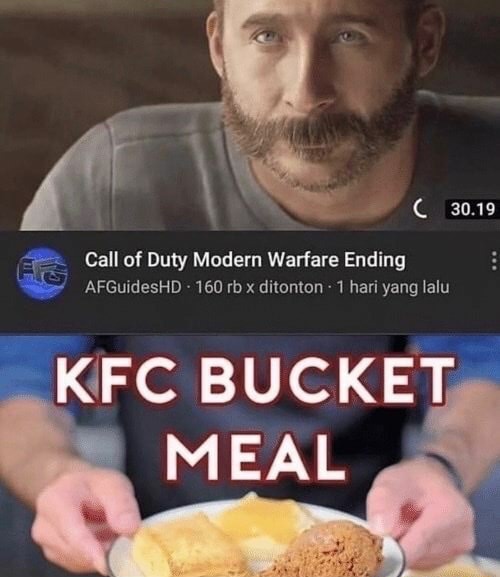 Buenas tardes, En este tweet el CM nos adjunta una imagen donde se aprecian dos miniaturas, una que trata de un video sobre el final del videojuego CoD MW y otra de unas manos sosteniendo un manjar de nuestra empresa favorita de pollo. Parece que son la misma imagen. Un saludo.
