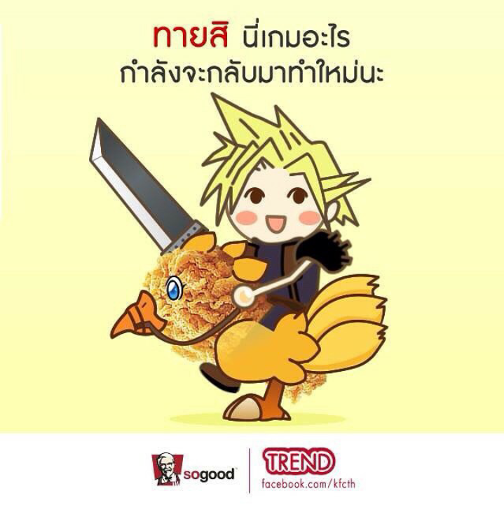 @KFC_ES ahora sabemos que vuestra carne es 100% chocobo original criado en las mejores granjas de chocobos #FFVIIpic.twitter.com/y0FUTmmkTj