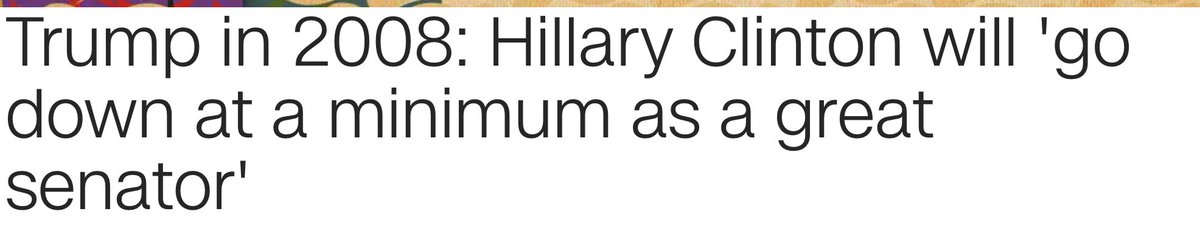 Try 4 years ago: "Hillary Clinton I think is a terrific woman..I think she does a good job. And I like her"http://www.theatlantic.com/politics/archive/2016/05/the-fox-news-interview-where-donald-trump-lavished-praise-on-hillary-clinton/482415/ …