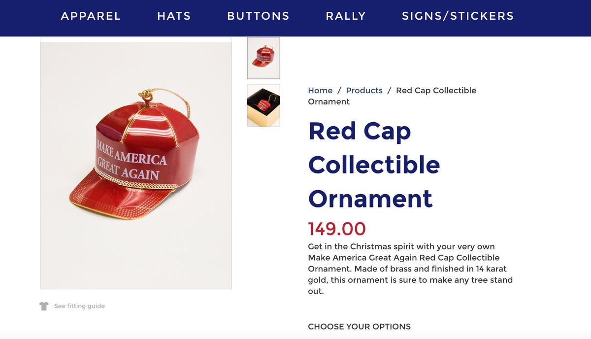 I'm sure all his supporters worried about "economic anxiety" will willingly hand over $150 for an ornament.