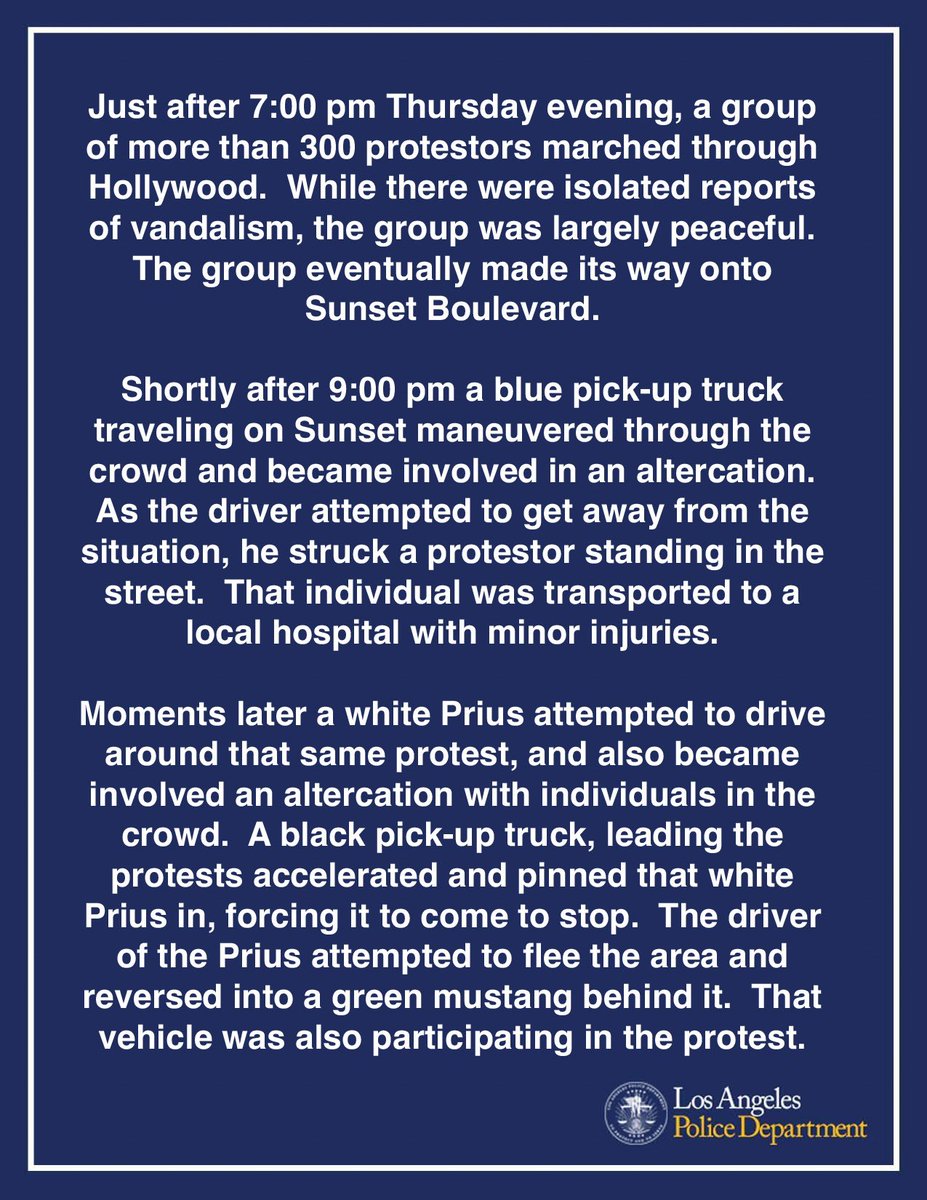 UPDATE: LAPD tells @RobertNBCLA live on @NBCLA that the Prius driver was DETAINED not arrested in this incident.pic.twitter.com/uNX7knDprS