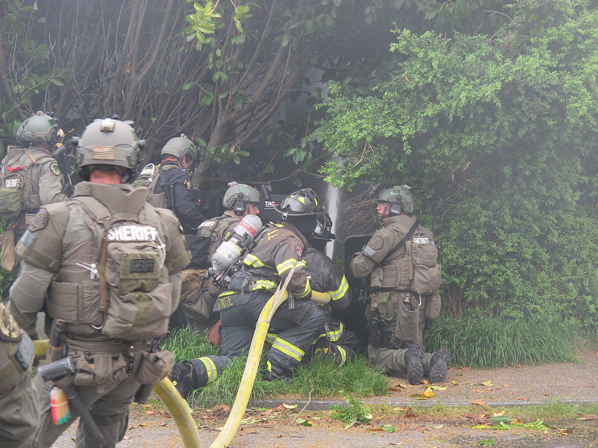 @KingCoSheriff &@SeattleFire today during the stand-off/fire. Deputies keeping fire fighters safe while they worked to extinguish the flames.pic.twitter.com/meoWmuxVPP