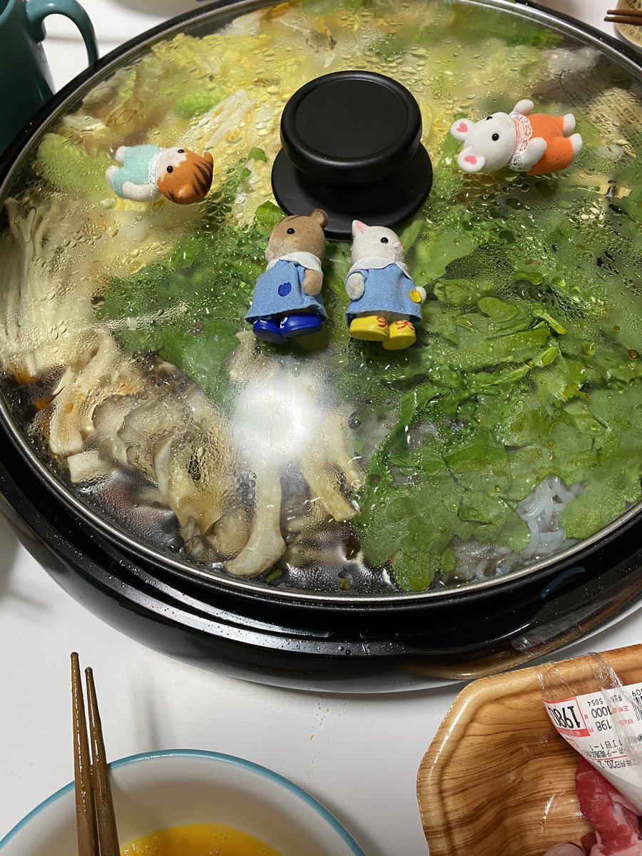 すき焼きの準備終わった! その間みんなはお買い物に行ったのでで孤独ですファミリーもどこかに行っちゃったしどうしよう。。。pic.twitter.com/aMDM9m6yxa