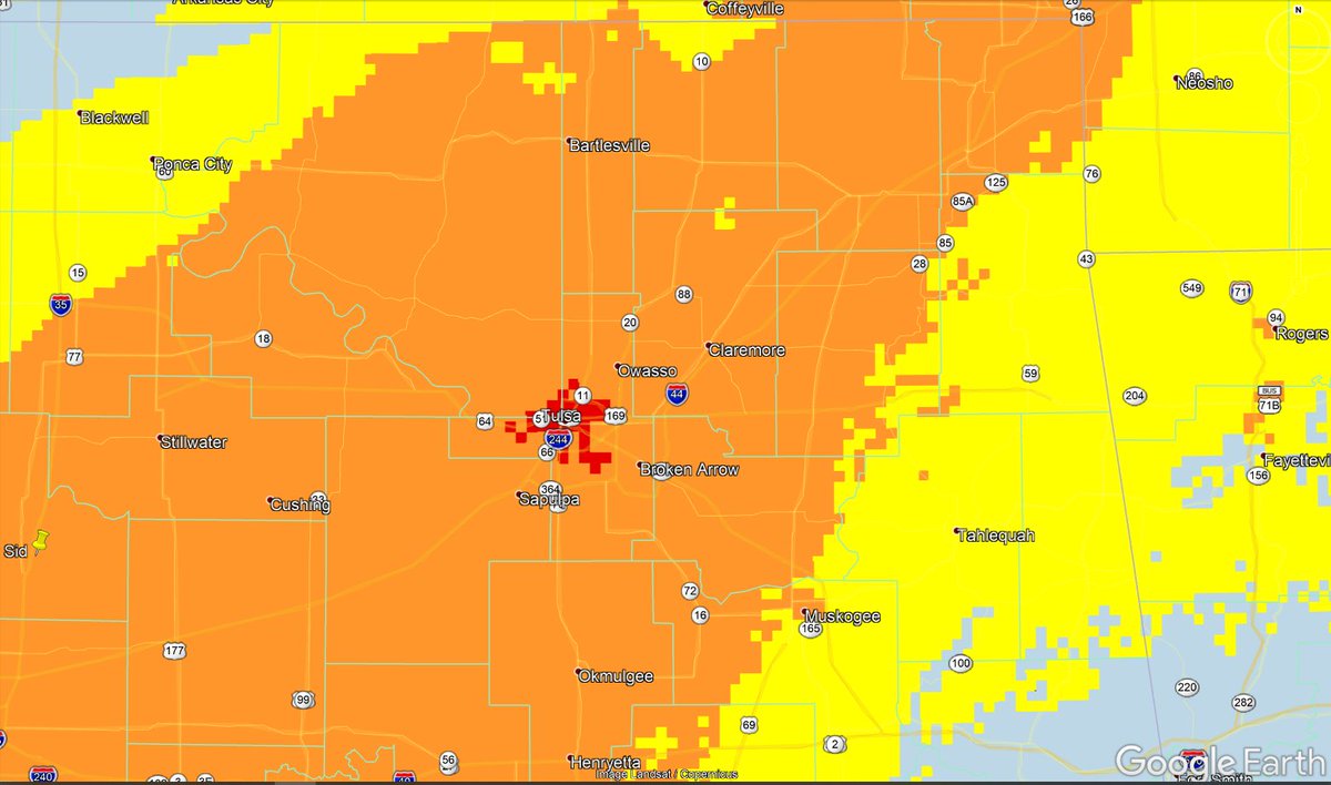 NWS Experimental Winter Storm Severity Index... small area of major impacts in Tulsa... the index takes into account urban areas...pic.twitter.com/U5Mq77gY63