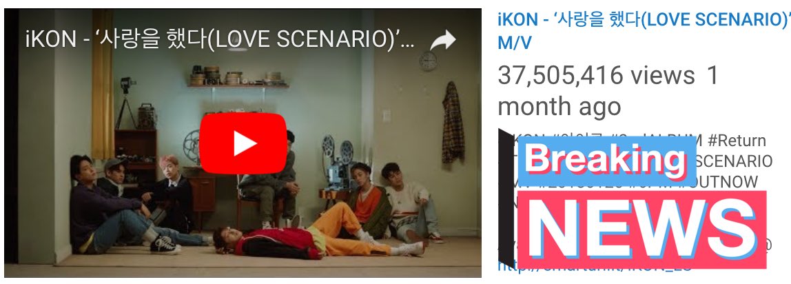 📣TEAM YOUTUBE 37.5 MILLION VIEWS & 813K LIKES as of 2:50 pm kst 2018.03.04 Good job iKONICs! we can do BETTER, TOGETHER! KEEP STREAMING #LSMV 🙏 We’re halfway there! #LoveScenario38M 👉 http://youtu.be/vecSVX1QYbQ  @YG_iKONIC #iKON #아이콘 #사랑을했다 #LOVESCENARIOpic.twitter.com/C66423jZZR