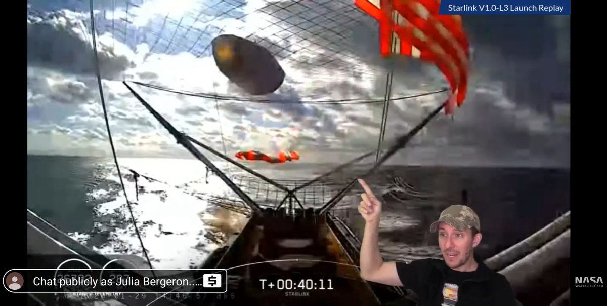 @KSpaceAcademy on the@NASASpaceflight livestream is all of us when GO Ms. Tree caught the fairing.Third successful fairing catch for the Fleet.pic.twitter.com/aZoUdJmjZP