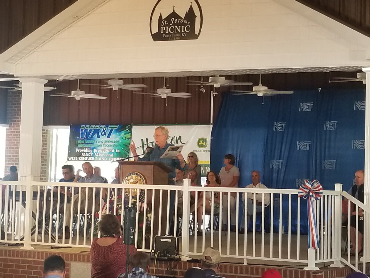 .@SenateMajLdr holding up @heraldleader article asking if @kydems can come back. Crowd's consensus answer: no #fancyfarmpic.twitter.com/NUHaXjcbox