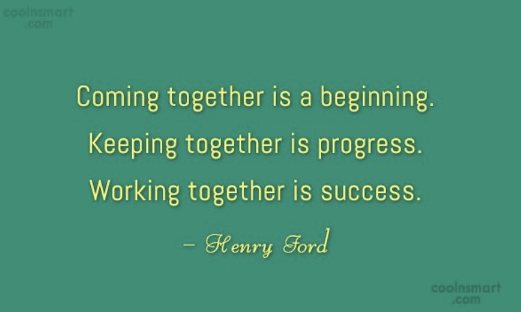 “Coming together is a beginning. Keeping together is progress.Working together is success.”~Henry Fordpic.twitter.com/UMFKPbMw07