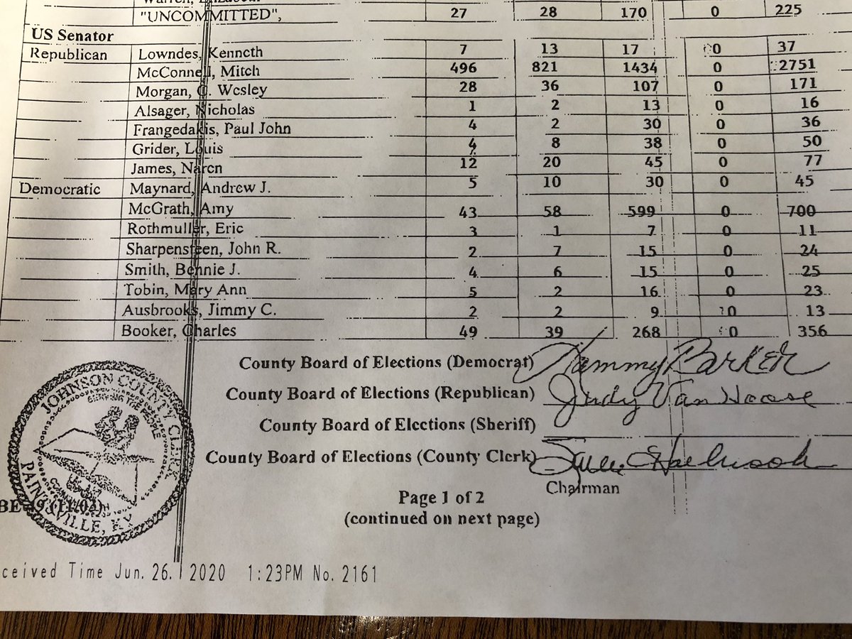 That's 60 - 30 McGrath over Booker. 2019 Gov. Primary: 66 - 22% Atkins over Beshear. Beshear won the statewide primary by 6pts, and Booker over-performed him here in this very rural county.