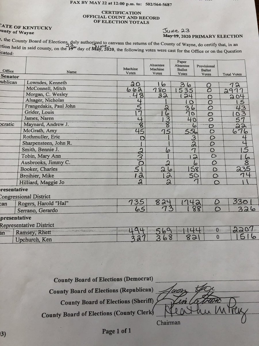 Similar to Johnson county. Booker wins Election Day. McGrath winning the absentees in a huge way