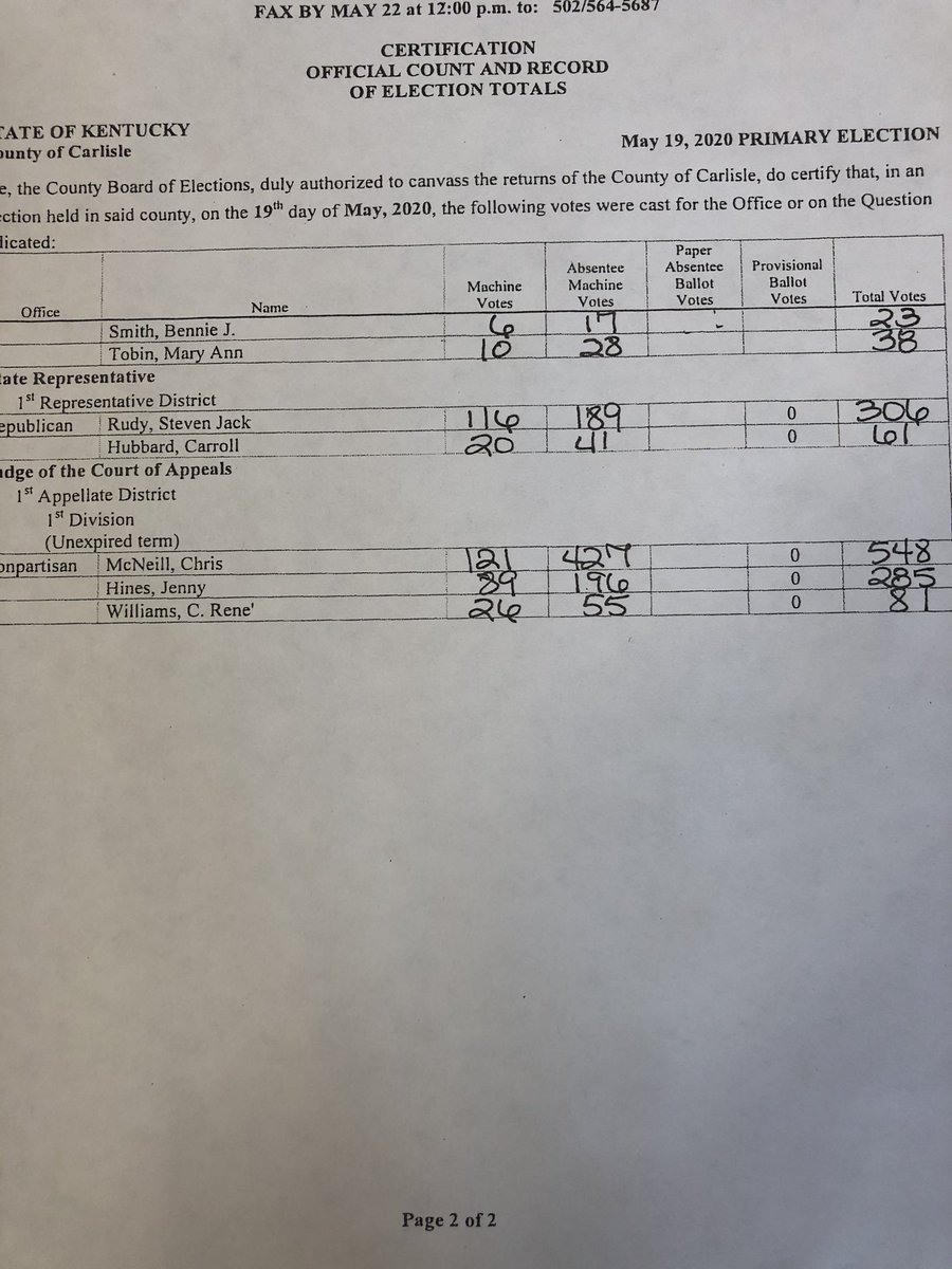 Unofficial Carlisle County results:pic.twitter.com/zFltXItxJk