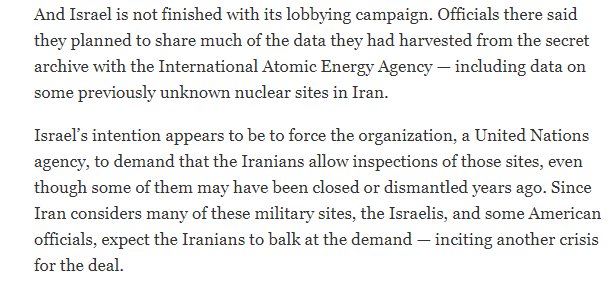 The Mossad Iran archives discovered "data on some previously unknown nuclear sites in Iran." (NYT) Isn't that sort of important? Shouldn't the people who claim that the inspections being done now are so wonderful and intrusive be up in arms over this?