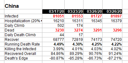 Looking at the numbers I noticed it in the last days as well. I suspect that the numbers of CoVid-19 related deaths reported from China might be underreported due to a variety of factors such as testing ?