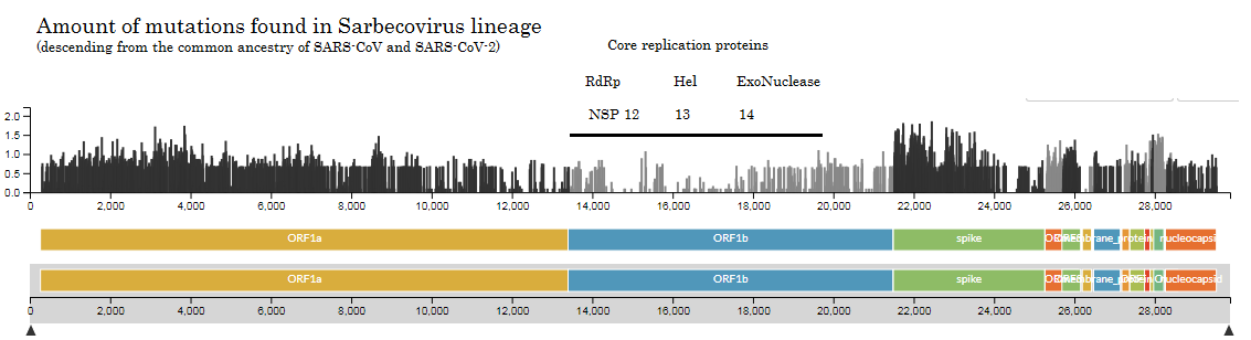 A first guess is that those mutating slowlier (in the betacoronavirus and sarbecovirus lineages) are more useful than those mutating much faster. Nsp12-13-14 (the core replication complex) are immediately highlighted this way.pic.twitter.com/2prXhUdNOX