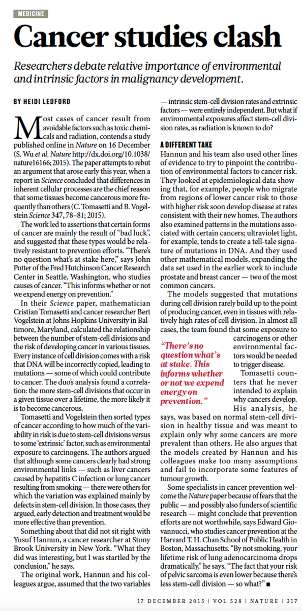 Can we lay the 'bad luck' cancer hypothesis to rest now? Great study debunking one of the most hyped papers of 2015.https://twitter.com/EricTopol/status/677189811120156672 …