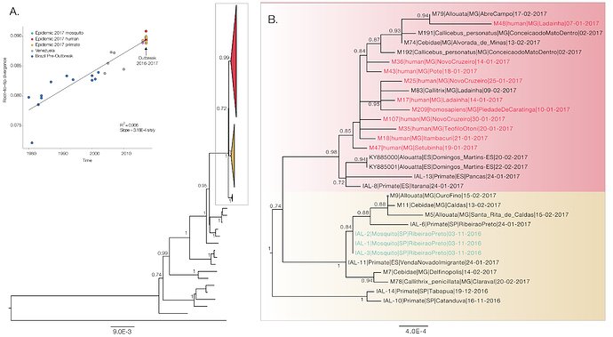 Fantastic work tracking the Brazilian yellow fever outbreak by @Hill_SarahC @nmrfaria @EvolveDotZoo @lalcan40 et al. http://virological.org/t/real-time-genomic-surveillance-of-the-yellow-fever-virus-outbreak-in-brazil-2017/ …pic.twitter.com/x5dT6FTAd0