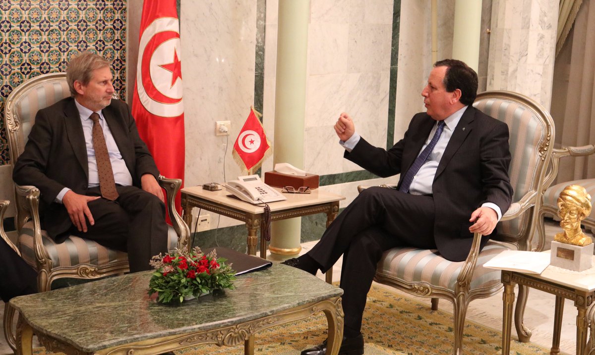 Discussing the Tunisian European plan in economy and migration for the period 2017-2020. The meeting with @JHahnEU was very productive.