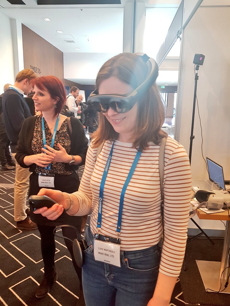 .@MakeRealVR's Sophie and Clare trying out the Magic Leap...including me. #immersivewomenpic.twitter.com/0g4u0wU0rF