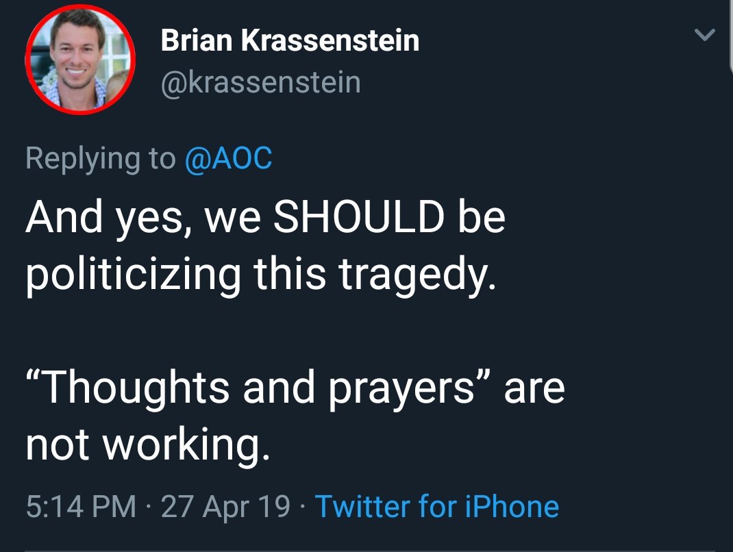 And it’s taken @KaitMarieox an instant to make this political. Show some respect for the moment, if not the victims.