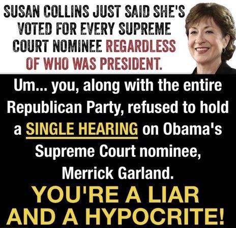 Aoparently not all of those women "lawmakers" have the same vagenda. Senators Susan Collins & Shelley Capito are up for re-election in 2020. Both blocked Merritt Garland from getting a fair hearing, and both voted to confirm Brett Kavenaugh without looking at his entire record