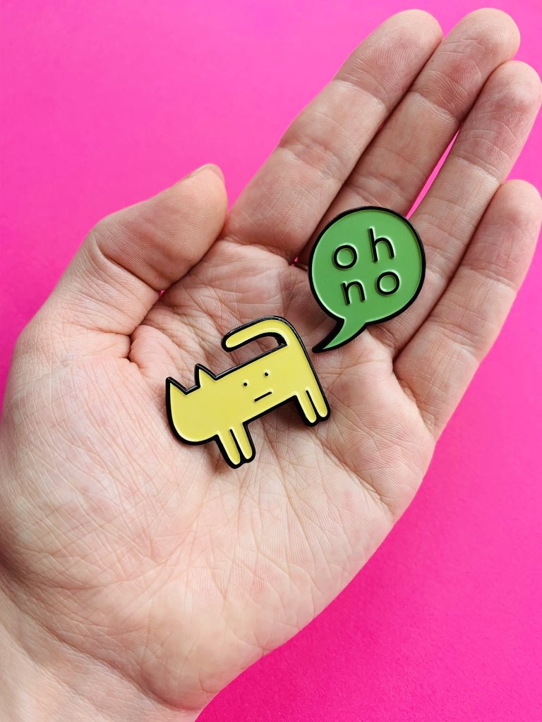 I’ve restocked the “oh no” pins and the “cat” pins also! only a limited number available http://www.theohnoshop.com pic.twitter.com/W4TY6CqOMG