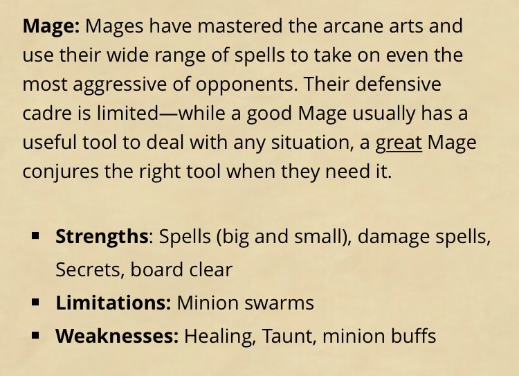 Apparently Mage’s ‘Limitation’ is Minion Swarms, and it’s ‘Weakness’ is Taunt