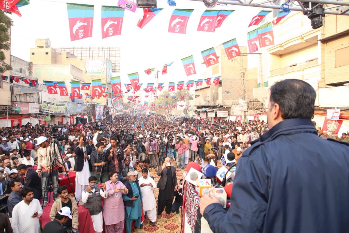 چیئرمین پاک سرزمین پارٹی سید مصطفیٰ کمال کا لاڑکانہ جلسہ میں لاڑکانہ کی عوام کی جانب سے شاندار استقبال، پاک سرزمین پارٹی نے نفرتیں ختم کرنے کے لئے جلسہ کیا ہے