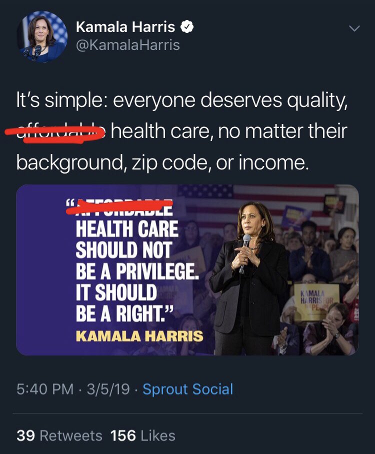 Not “affordable” healthcare, everyone deserves healthcare, period.