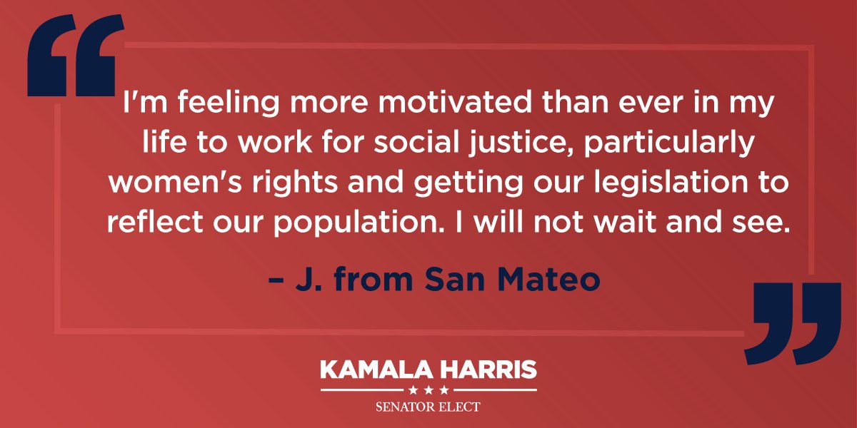 Kamala please keep motivating the young girls we need to let them know they can't give up. My 18 yr daughter looks up to you.