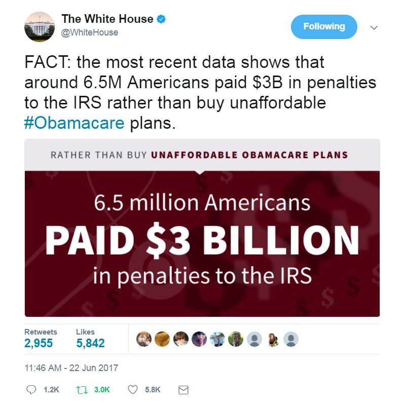 "O" Care such a good deal that 6.5 Million opted to pay $3BILLION in penalties...pic.twitter.com/CumgMCvD1E