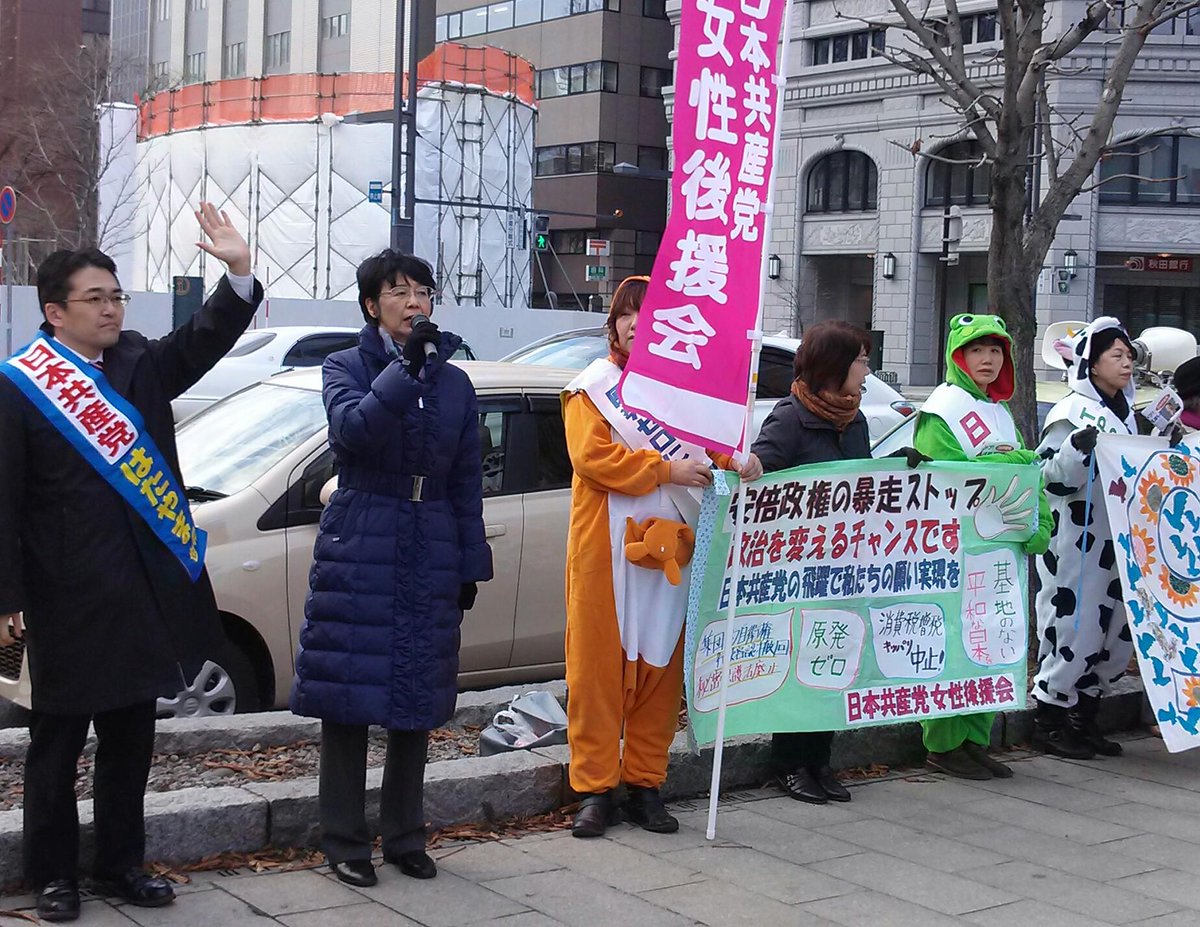 今日は、2区の金倉まさとし予定候補と三ヶ所で街頭宣伝。それぞれ呼び込みをしており、全体で百人をこえる方々が集まって下さいました。まさに本番!午後の大通り公園の女性後援会のリレートークも、ぬいぐるみ姿の女性が元気いっぱいでした。pic.twitter.com/MNOxNIMm2F