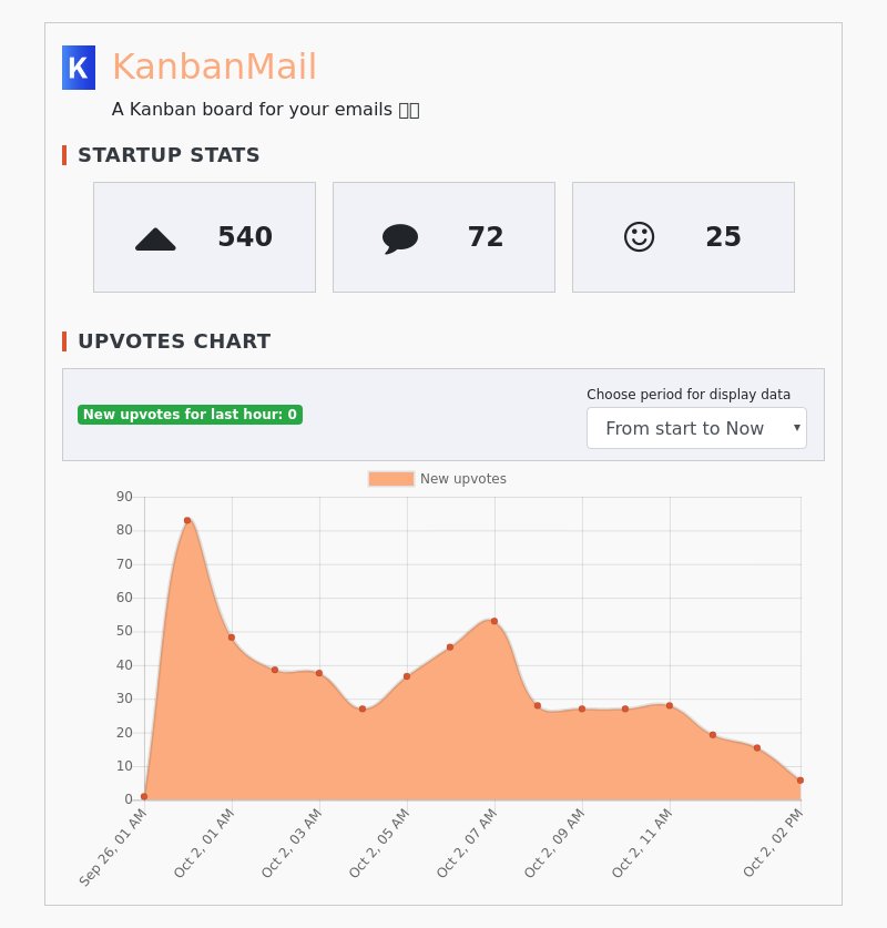 Product Hunt launch stats for @KanbanMail