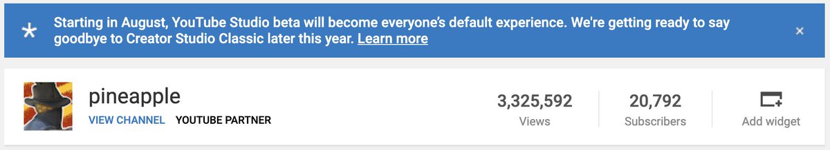 just got this notification at the top of Creator Studio Classic, and gotta say there is no way the Studio Beta is ready for daily driving a channel. its analytics are an improvement for sure, but the rest is an attempt to be sleek at the cost of functionality. @TeamYouTubepic.twitter.com/stGlvqYiOG