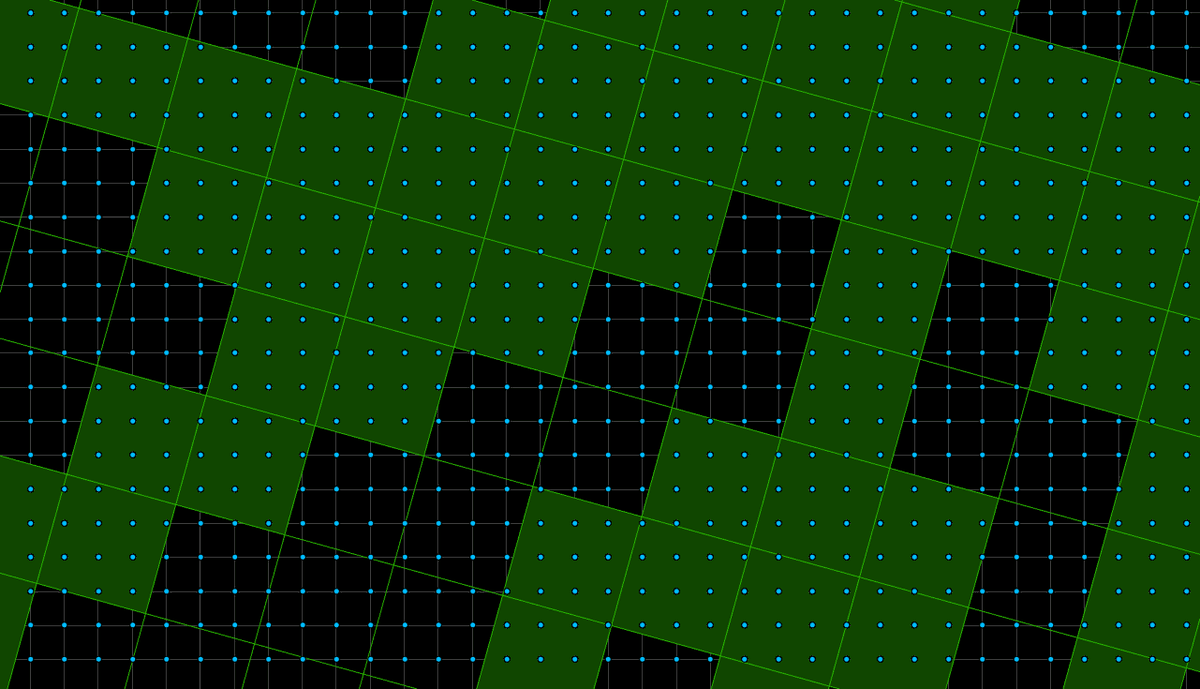 The patterns that show up in imperfect solutions are quite fascinating - here's a scaled and rotated grid with all the squares containing 7 points from the lattice shadedpic.twitter.com/euyJ3KAo5z