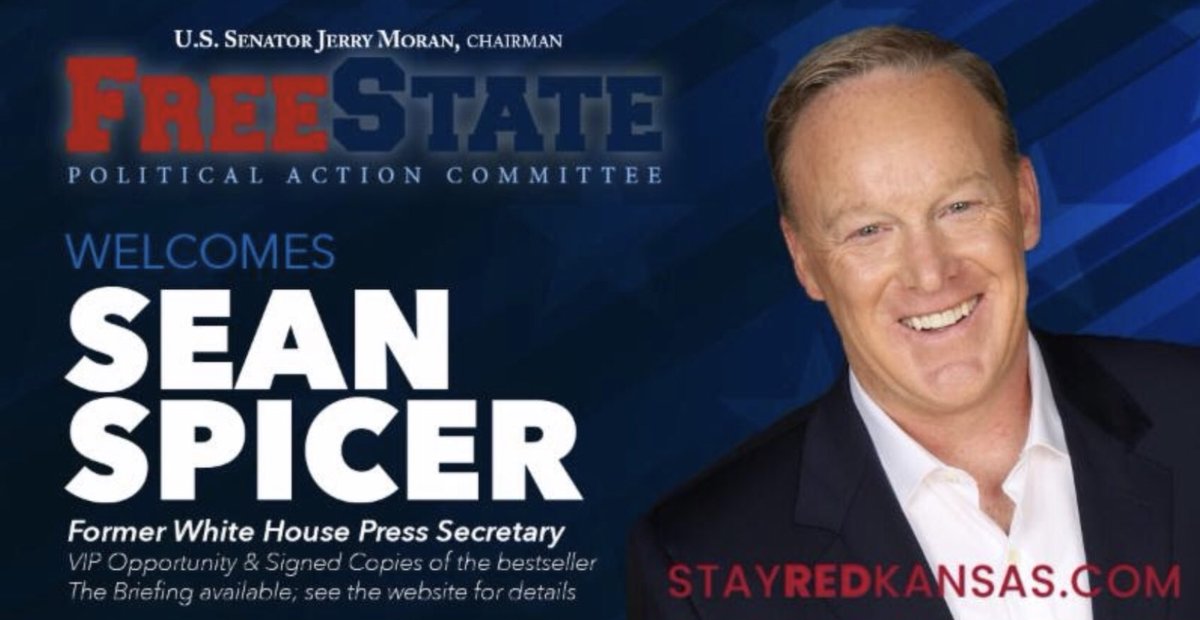 Registered to attend #ksgop19? You won’t want to miss Sat AM breakfast with @seanspicer, hosted by US Sen @JerryMoran’s FreeState PAC. #ksgop #ksleg #MAGApic.twitter.com/8iCAPWPPDn