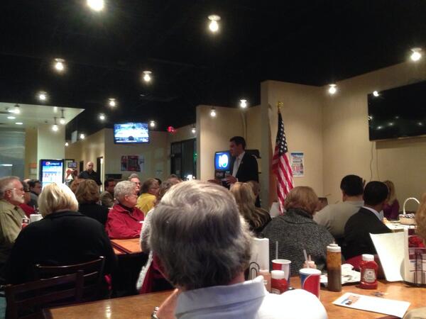 Congressman Kevin Yoder addresses the monthly 3rd District GOP meeting. Standing ovation. #ksgop.pic.twitter.com/iionJ756ds