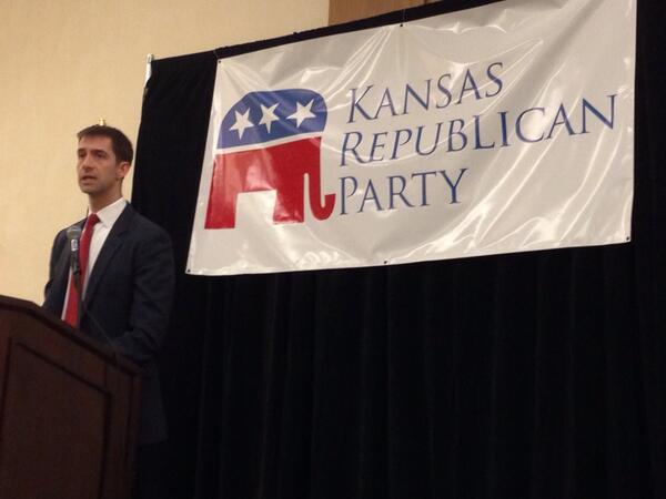Tom Cotton (R AR) speaks to the KS GOP lunch. Blasting the disaster known as Obamacare. #ksgoppic.twitter.com/DEyXIbjOEo