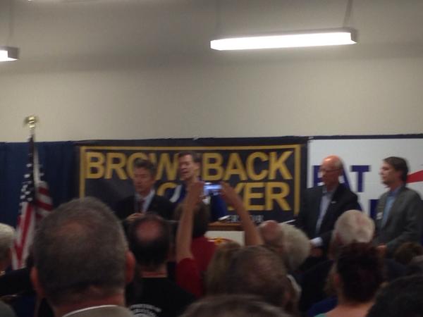 Rand Paul addresses the fired-up rally. Endorses Roberts and Brownback. #ksgoppic.twitter.com/rVQXYwPVhV
