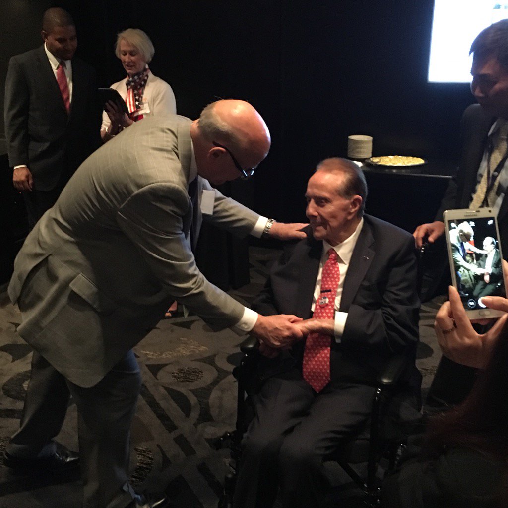 Senator Pat Roberts speaks with @senatordole, who predicted a Trump win. #RNCinCLE.pic.twitter.com/UCWSvd3GBa