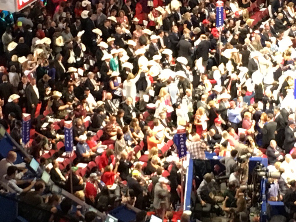 Dear Gidget, they are dancing. The Kansas Delegation from above. #RNCinCLEpic.twitter.com/dWXBLt3UqG