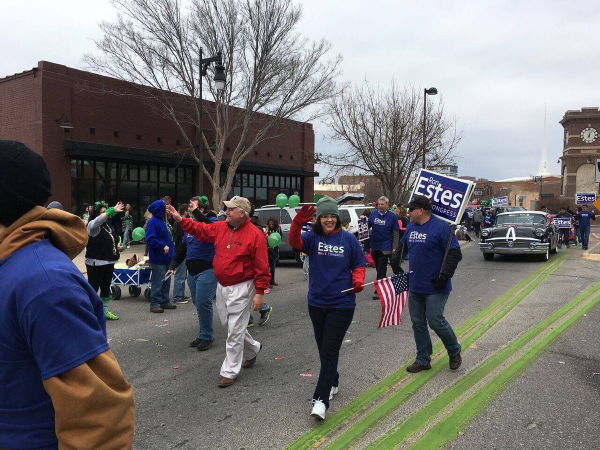 Great turnout for @TalkToRonEstes at today's (cold) Wichita St Patrick's Day parade. #ks04pic.twitter.com/uq3214kh4f