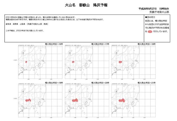 @Kantei_Saigai: 【噴火情報】御嶽山での噴火を受け、気象庁は15:50に降灰予報を更新しました。新着情報は随時こちらのページでご覧いただけます。⇒ http://twme.jp/pmo/01eC ” -