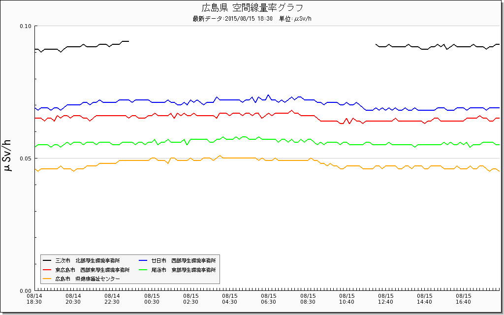 2015年8月15日、鹿児島と福岡と大分と、広島の放射線量がヘンだ。