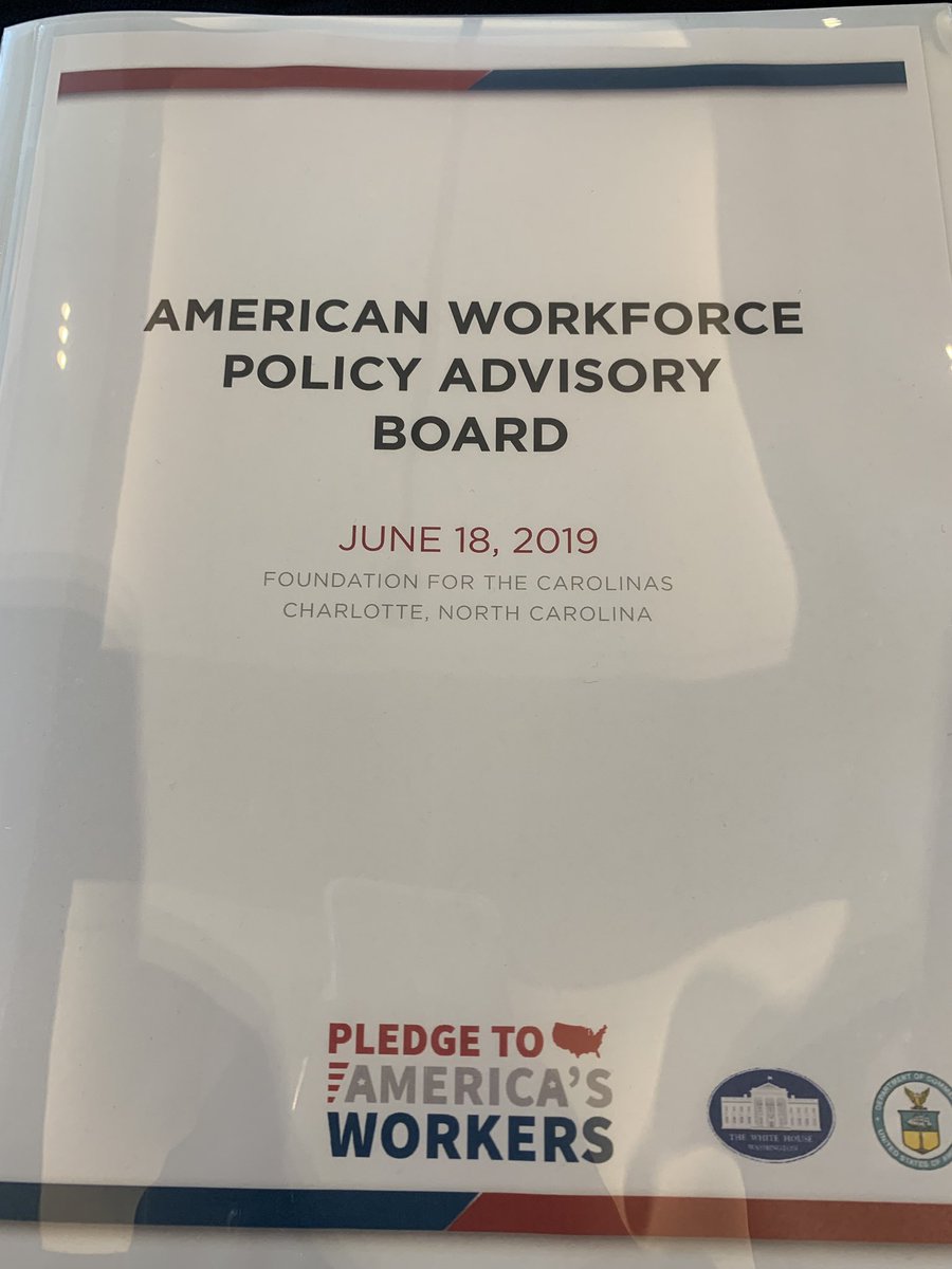 HAPPENING NOW: @IvankaTrump arrives at next stop, meeting of American Workforce Policy Advisory Board. The 21-member board includes one American mayor - @CLTMayor @ViLyles - who’s hosting the board’s 2nd official meeting (1st was in DC in March). @ABC11_WTVD @ABCPoliticspic.twitter.com/axz3Q9rtmC