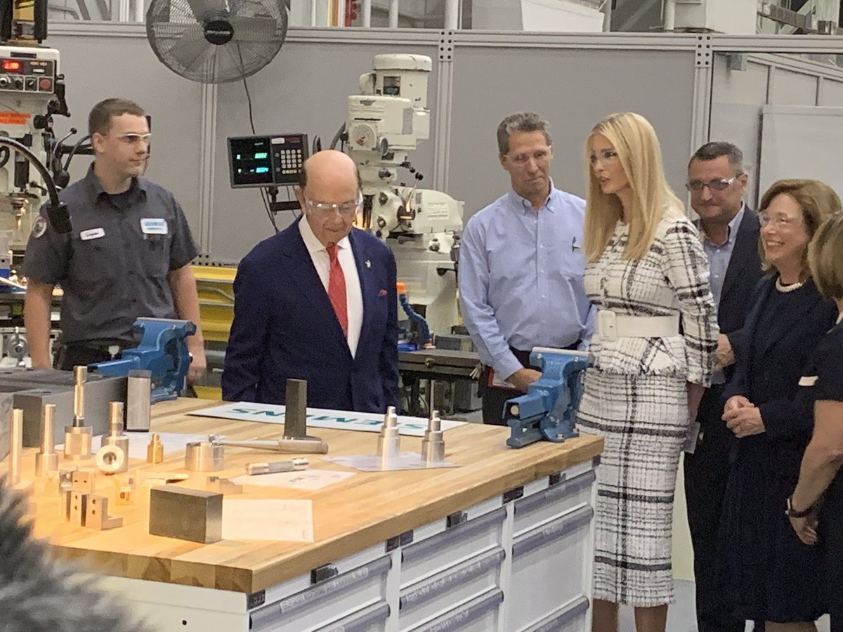 With @realDonaldTrump & @POTUS administration usually citing #tradewars & corporate taxes for dearth of American manufacturing jobs, @IvankaTrump & @SecretaryRoss aim to reverse falling student interest in entering blue collar workforce. @ABC11_WTVD @ABCPoliticspic.twitter.com/aYwQUEr6KA
