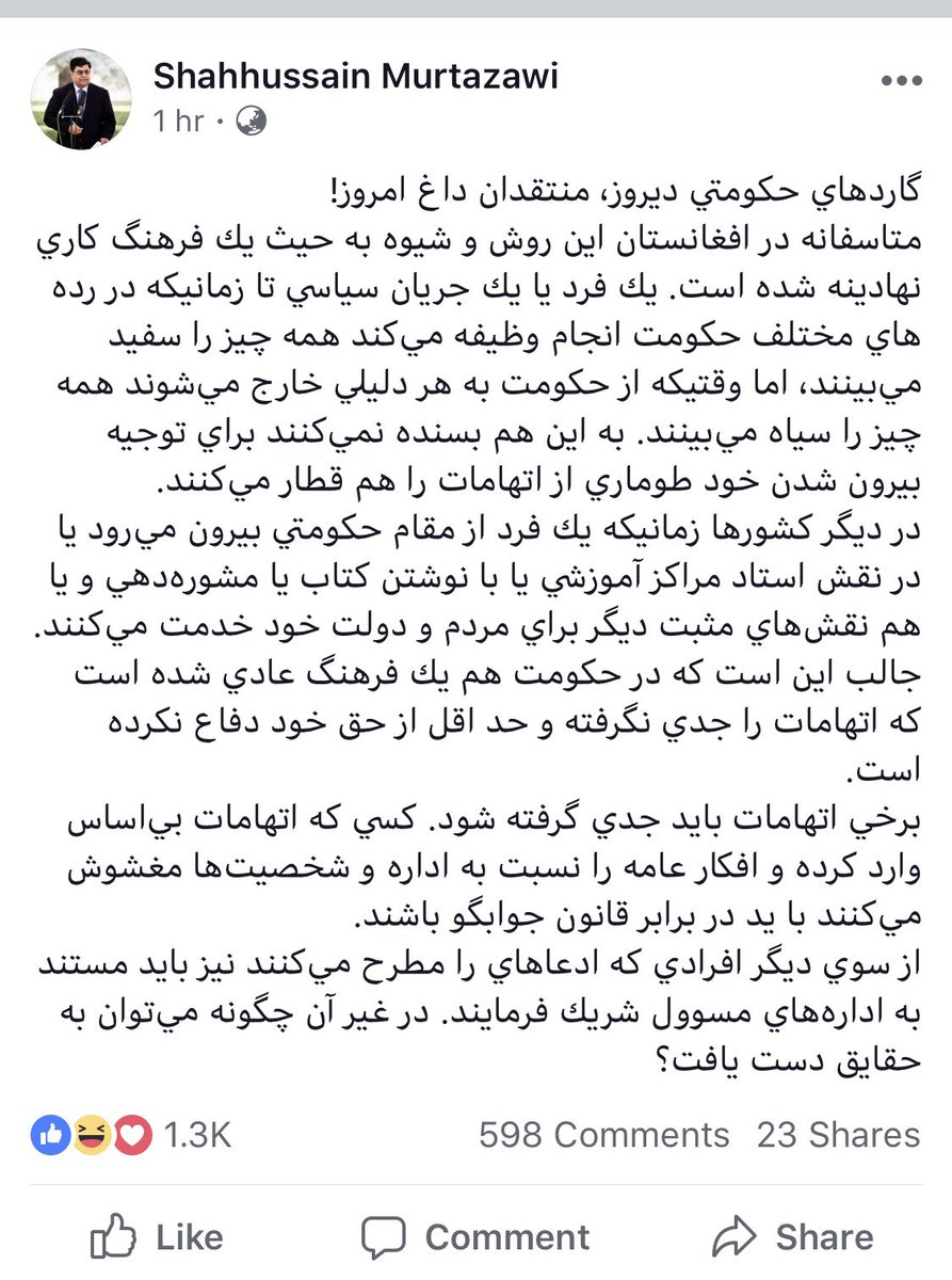 شاه حسین مرتضوی خواهان اثبات اتهام ها بر ارگ شده استpic.twitter.com/YztAUfQfZW
