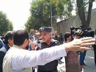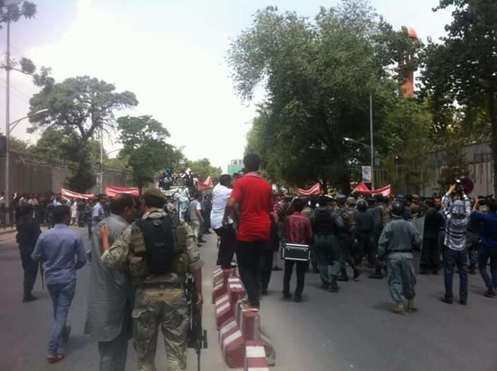 هنگامی که پولیس مانع رفتن اعتراض کننده گان به جاده #ارگ شد.pic.twitter.com/aQfxOu57R7