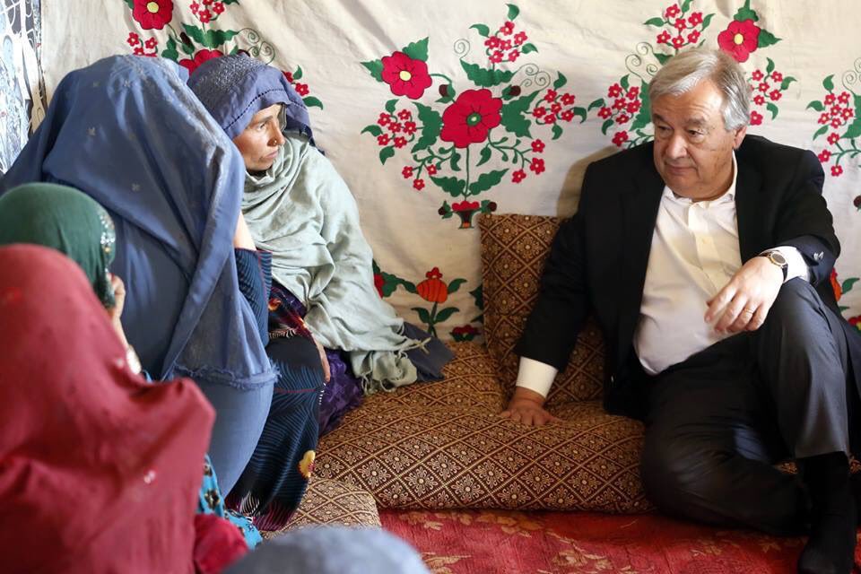 دبيركل سازمان ملل درسفرش به كابل پيش ازرفتن به ارگ وسپيداربه ديداركساني رفت كه درنتيجه جنگ هاازمحلات وخانه هاي شان فراركرده به كابل آمده اندpic.twitter.com/3NhV9n4atx